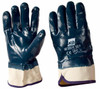 Guanto di protezione con rivestimento in gomma nitrilica di colore blu e manicotto in cotone. Ottima resistenza a contatto con olii, vernici e gasolio. Indicato per lavori di pulizia, agricoltura, giardinaggio, edilizia, industria pesante e leggera. Taglia 10.