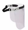 Visiera regolabile in policarbonato trasparente, di colore bianco e di taglia piccola. Fornisce protezione al volto e agli occhi da eventuali agenti patogeni, impedisce a particelle di saliva, schizzi e spruzzi di entrare a contatto con il volto di chi la indossa, dando anche una buona aerazione.