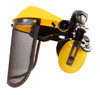 Visiera protettiva gialla con schermo in rete e cuffie