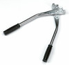 Pinza per antisucchio in metallo con impugnatura in plastica.