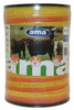 Banda per recinti elettrici gialla e arancione in fibra d'acciaio. Ha una lunghezza di 200 m, larghezza di 20 mm e resistenza massima di 90 kg. Nella banda sono presenti 4 conduttori d'acciaio di diametro 0,16 mm. Adatta per mucche, cavalli, maiali, pecore e cervi.