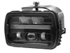 Proiettore a LED 10-30V DC. Lente riscaldata e freccia sequenziale. Funzioni: Abbagglianti, anabbaglianti, Luce di posizione, Freccia sequenziale. Protezione IP69K, Temperatura di lavoro -40°C a +80°C. Lente in vetro temprato e corpo in alluminio. Lunghezza cavo in uscita 18 cm con connettore H4. Radio protezione: CISPR 25 Classe 3