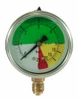 Manometro isometrico alla glicerina con cassa in acciaio inox diametro 63 mm, attacco radiale M1/4" gas, scala 0-5/25 bar colorata.