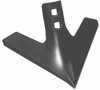 Vomere a lancia per vibrocoltivatore con larghezza di 200 mm, spessore di 6 mm e un interasse dei fori di 45 mm. È progettato per adattarsi alle molle flex a due fori di dimensioni 45x12 mm e 60x12 mm.