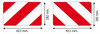 Questi pannelli di segnalazione del mezzo agricolo su strada, in alluminio di colore bianco e rosso, hanno delle dimensioni di 423x282x1 mm.