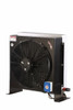 Scambiatore di calore in alluminio per portate da 30 a 210 litri/minuto con elettroventola da 12VDC. Termostato non incluso