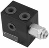 Fiancata d'ingresso filetti 3/8" con valvola di massima pressione e valvola di messa a scarico fornita senza bobina per elettrodistributori