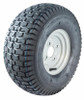 Ruota completa con battistrada Garden. Misura 16x6,50-8", 6 tele (6 PR), con camera d'aria e cerchio in ferro a 4 fori Fiat. Può supportare un carico massimo di 355 kg.