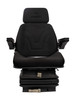 Sedile modello Top completo per macchine agricole e da costruzione, dotato di molleggio meccanico. Il rivestimento è in tessuto nero ed è completo di cuscini ergonomici avvolgenti. Il telaio è portante in lamiera.