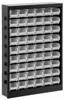 Strutture a giorno con contenitori in polipropilene, materiale antiurto. Utilissimi nei magazzini dove occorre movimentare i contenitori e il loro contenuto. A differenza degli scaffali tradizionali, queste strutture accolgono i contenitori evitando di perdere spazio in altezza, in larghezza e profondità. I contenitori non poggiano su ripiani, ma su tubi, per una maggiore capacità di carico