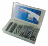Assortimento di coppiglie da 500 pezzi: 125 coppiglie diametro 2 mm (art. 04325), 100 coppiglie diametro 2,5 mm (art. 04326), 100 coppiglie diametro 3 mm (art. 04327), 100 coppiglie diametro 4 mm (art. 04329), 50 coppiglie diametro 5 mm (art. 004331), 25 coppiglie diametro 6 mm (art. 04333).